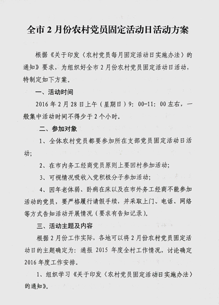 首次农村党员固定活动日具体实施方案