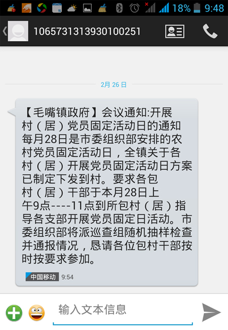 利用政务通短信平台收发活动通知