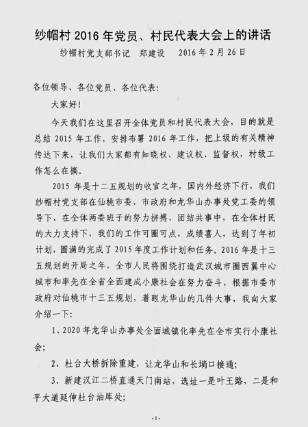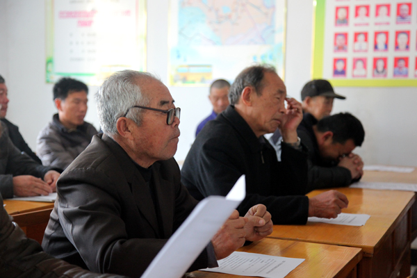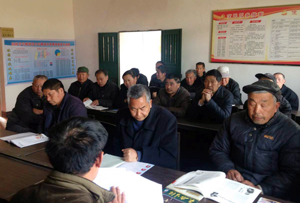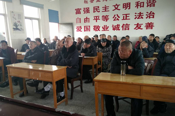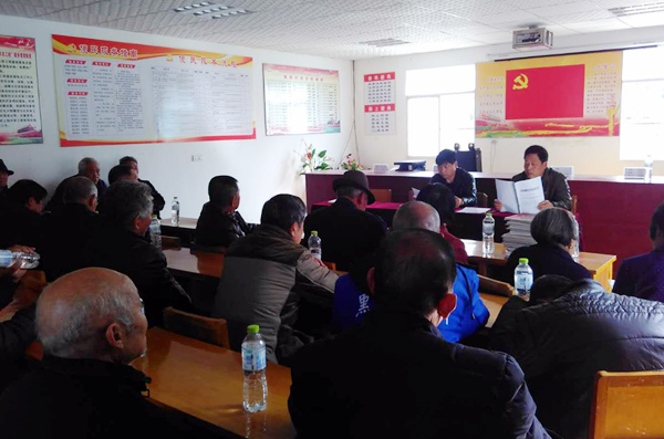 张沟镇和平村支部书记向全体党员通报2015年度全村工作情况