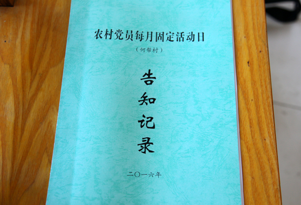 毛嘴镇秦杨村支部书记活动日现场宣读2016年工作计划