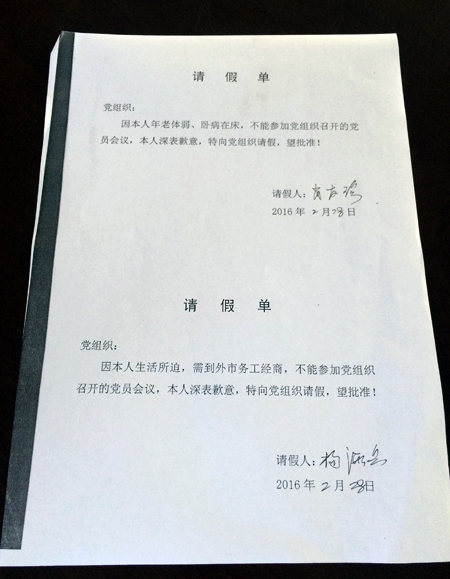 沙湖镇尧帮村规范党员请假手续,外出流动党员一律通过手机短信请假,在家党员必须书面请假。
