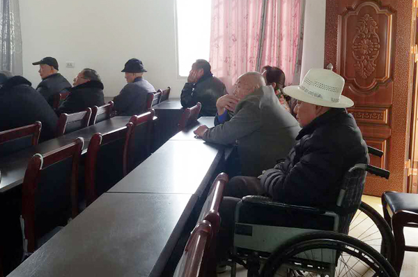长埫口镇长高村老党员坐着轮椅参加活动